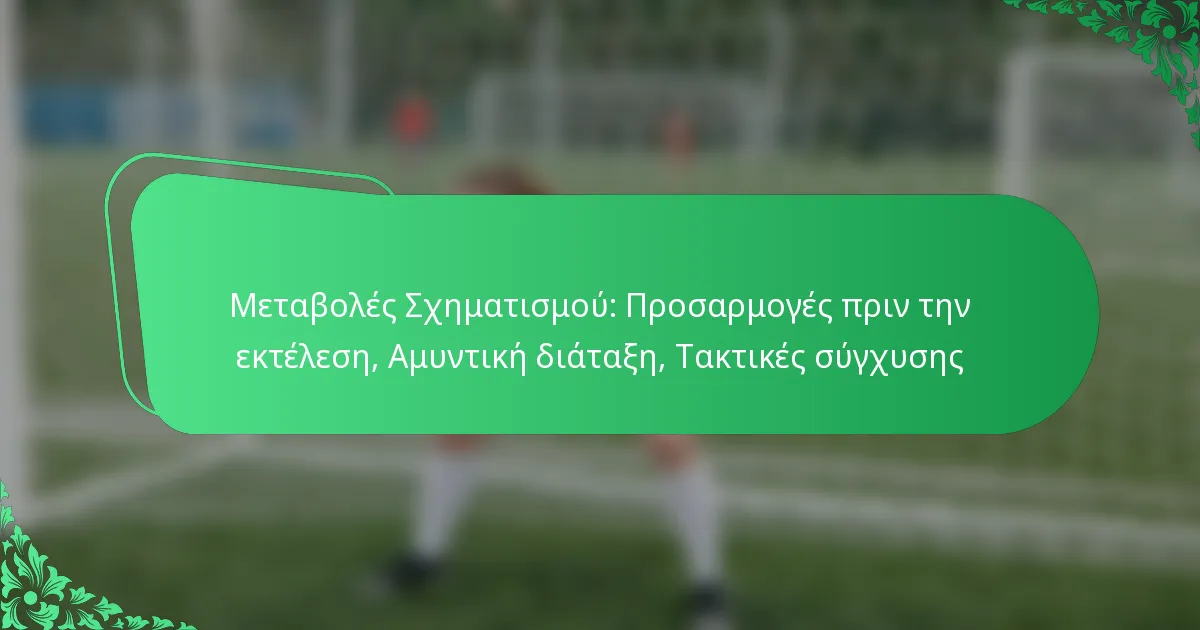 Οι αλλαγές σχηματισμού στο ποδόσφαιρο είναι ουσιαστικοί στρατηγικοί ελιγμοί που εκτελούνται από τις ομάδες πριν από την εκτέλεση της φάσης, με στόχο τη δημιουργία σύγχυσης και την εκμετάλλευση αδυναμιών στη διάταξη του αντιπάλου. Οι προσαρμογές πριν από την εκτέλεση ενδυναμώνουν τις επιθέσεις να προσαρμοστούν στις αμυντικές διατάξεις, αυξάνοντας τις πιθανότητες επιτυχίας τους στοχεύοντας σε ανισότητες. Εν τω μεταξύ, οι αμυντικές διατάξεις σχεδιάζονται προσεκτικά για να αντεπεξέλθουν στις επιθετικές στρατηγικές, διασφαλίζοντας ότι οι παίκτες είναι τοποθετημένοι ώστε να διακόπτουν τις φάσεις αποτελεσματικά.